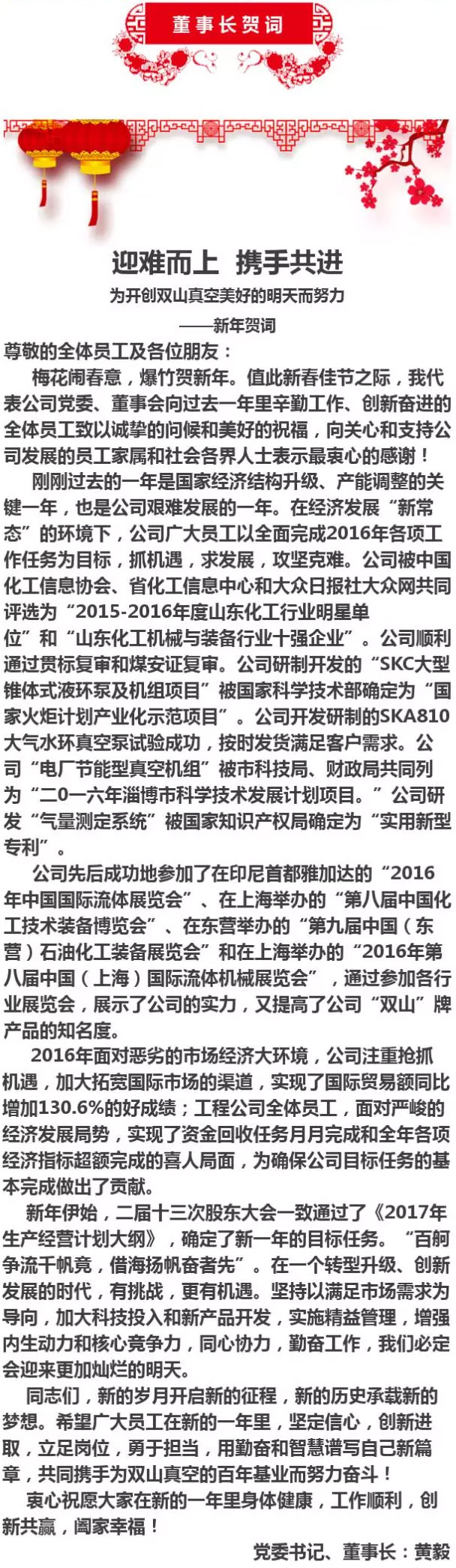 摘要:雙山真空給您拜年了!